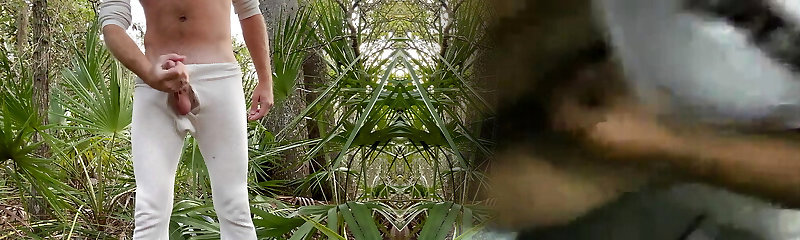 Long undergarments jerk and cum in the woods