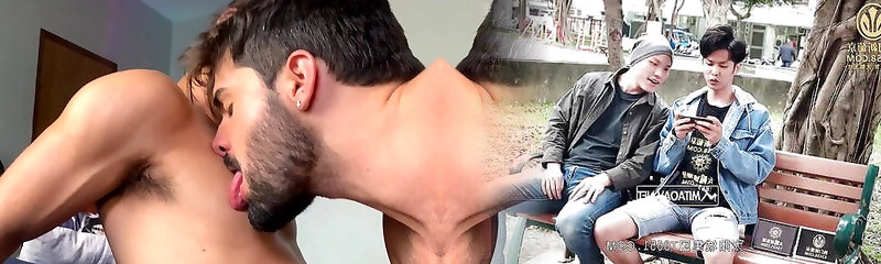 Young gay licks nipples before ass poke by Japanese twink