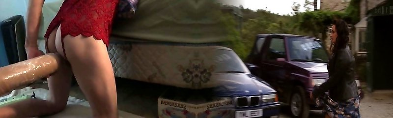 Arse exploded by Huge dildo machine