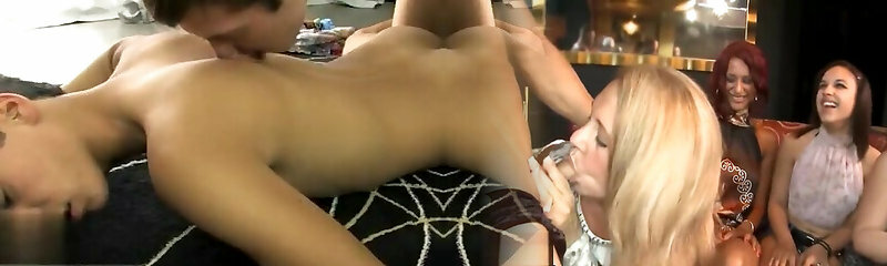 Fiesty blonde gives two gays deepthroat lessons